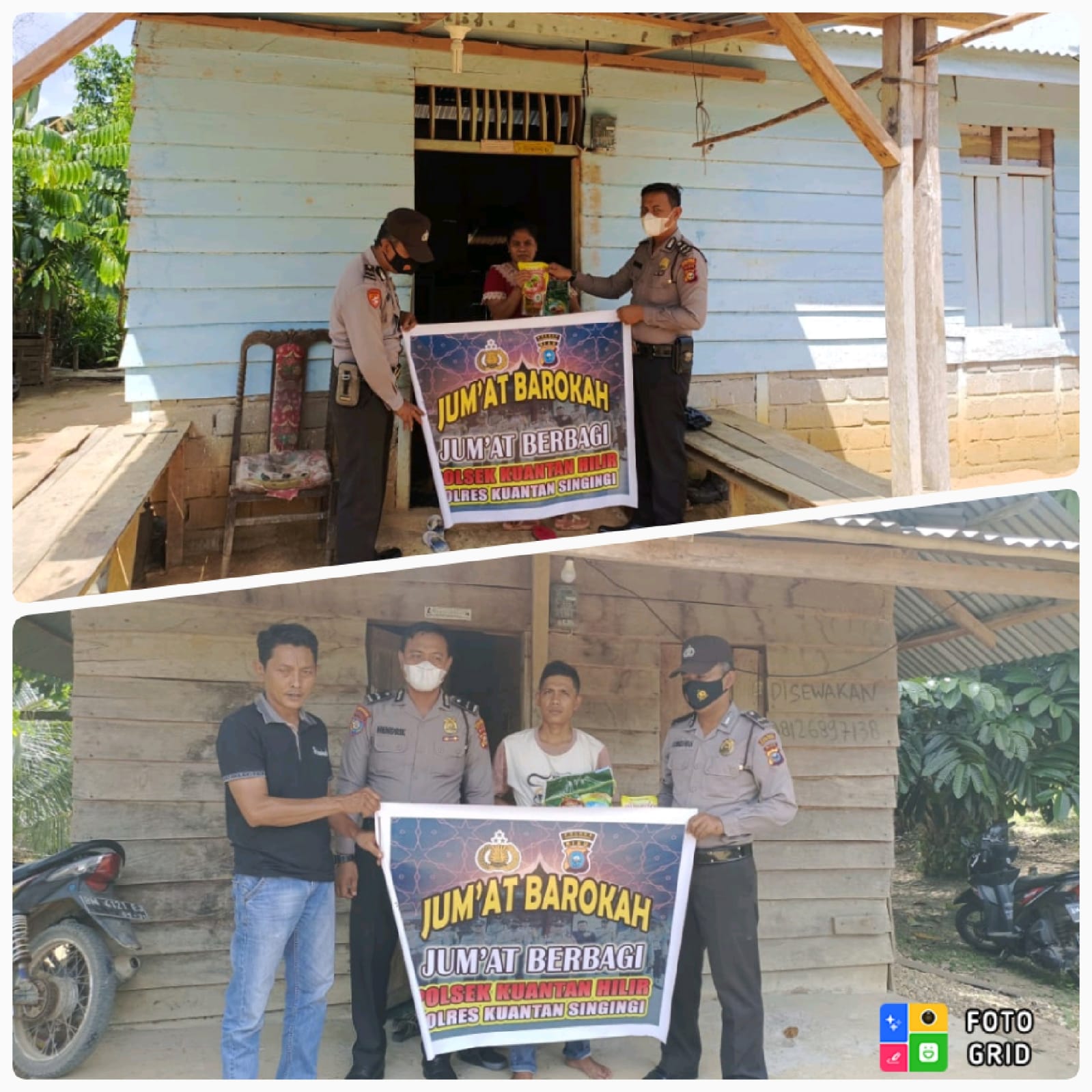 KUANTAN SINGINGI | Khabarterkini.co Jum’at Barokah Aparat berhativ mulia kembali lagi bagikan Sembako ukuran 10 kg , minyak goreng kemasan uvkuran 2 liter, ikan sarden 2 kaleng dan gula 2 kg kepada dua orang masyarakat di desa Teratak Baru ibu Hartina dan Dina wilayah hukum Polsek Kuantan Hilir, Jumat (23/09/2022).