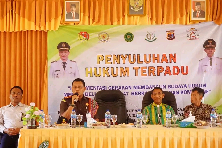 ATAMBUA-NTT | Khabarterkini.co Kepala Kejaksaan Negeri (Kajari) Belu, Samiaji Zakaria, SH., MH menghimbau agar kepada seluruh peserta Penyuluhan Hukum Terpadu untuk menyebarluaskan Program Jaksa Jaga Desa kepada masyarakat diwilayahnya masing-masing. Hal itu disampaikan Kajari Belu saat memaparkan materi saat kegiatan Penyuluhan Hukum Terpadu yang berlangsung di Aula Kantor Desa Naitimu, Kecamatan Tasifeto Barat, Kamis (08/09/2022).