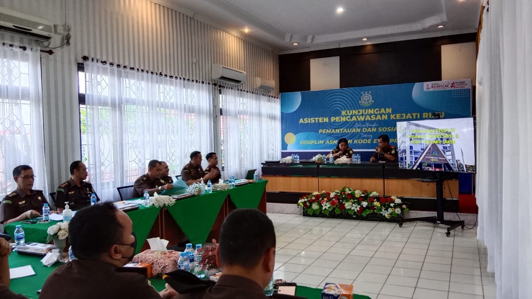Tim Pemantauan Pada Bidang Pengawasan Kejaksaan Tinggi Riau melakukan kegiatan Sosialisasi tentang Displin ASN dan Kode Etik Perilaku Jaksa serta Pemantauan Hasil Evaluasi Kegiatan Inspeksi Bulan Maret 2022.