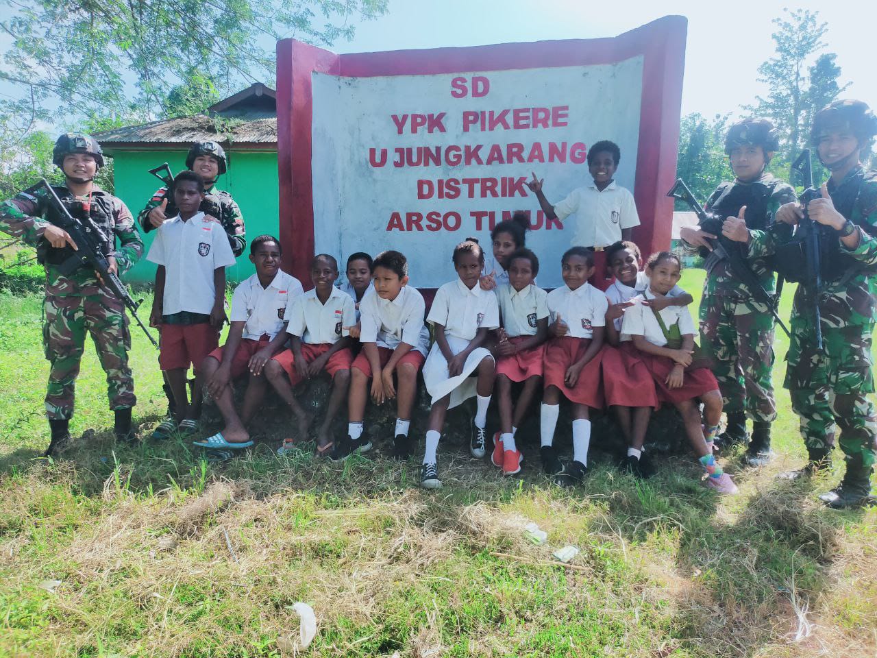 ”Kegiatan ini sebagai kehadiran dan kepedulian TNI untuk membantu meningkatkan mutu dan kemajuan pendidikan di Papua khususnya di daerah perbatasan, salah satu wujud kemanunggalan TNI dengan rakyat guna membangun kebersamaan dan silahturahmi di desa ini,” ungkapnya.