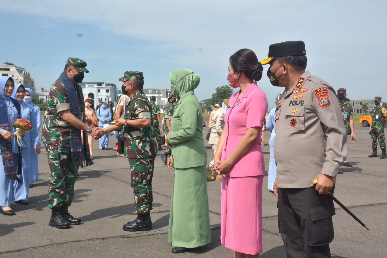 Pangdam I/BB, Mayjen TNI Achmad Daniel Chardin, SE, MSi, bersama Dankosek I Medan, Marsma TNI Mohammad Nurdin, Danlanud Soewondo, Kolonel Pnb Reka Budiarsa serta unsur Forkopimda Sumut turut menyambut kedatangan Kasau, Marsekal TNI Fadjar Prasetyo, SE, MPP, di Apron Charlie Lanud Soewondo Medan, Selasa (18/10/2022).