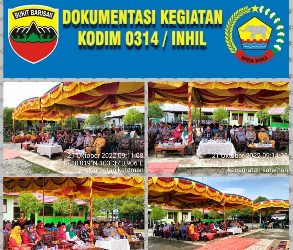 Danramil 06/Kateman Kapten Czi Asmar Hadi yang diwakili Praka Raja Oloan Sihotang mengahdiri acara pekan Budaya yang di laksanakan oleh SMP Negeri 1 dalam rangka menyambut Hari Sumpah Pemuda yang ke -94, di kelurahan Bandar Sri Gemilang Kecamatan Kateman, kabupaten Indragiri Hilir, Sabtu (22/10/2022) pagi.