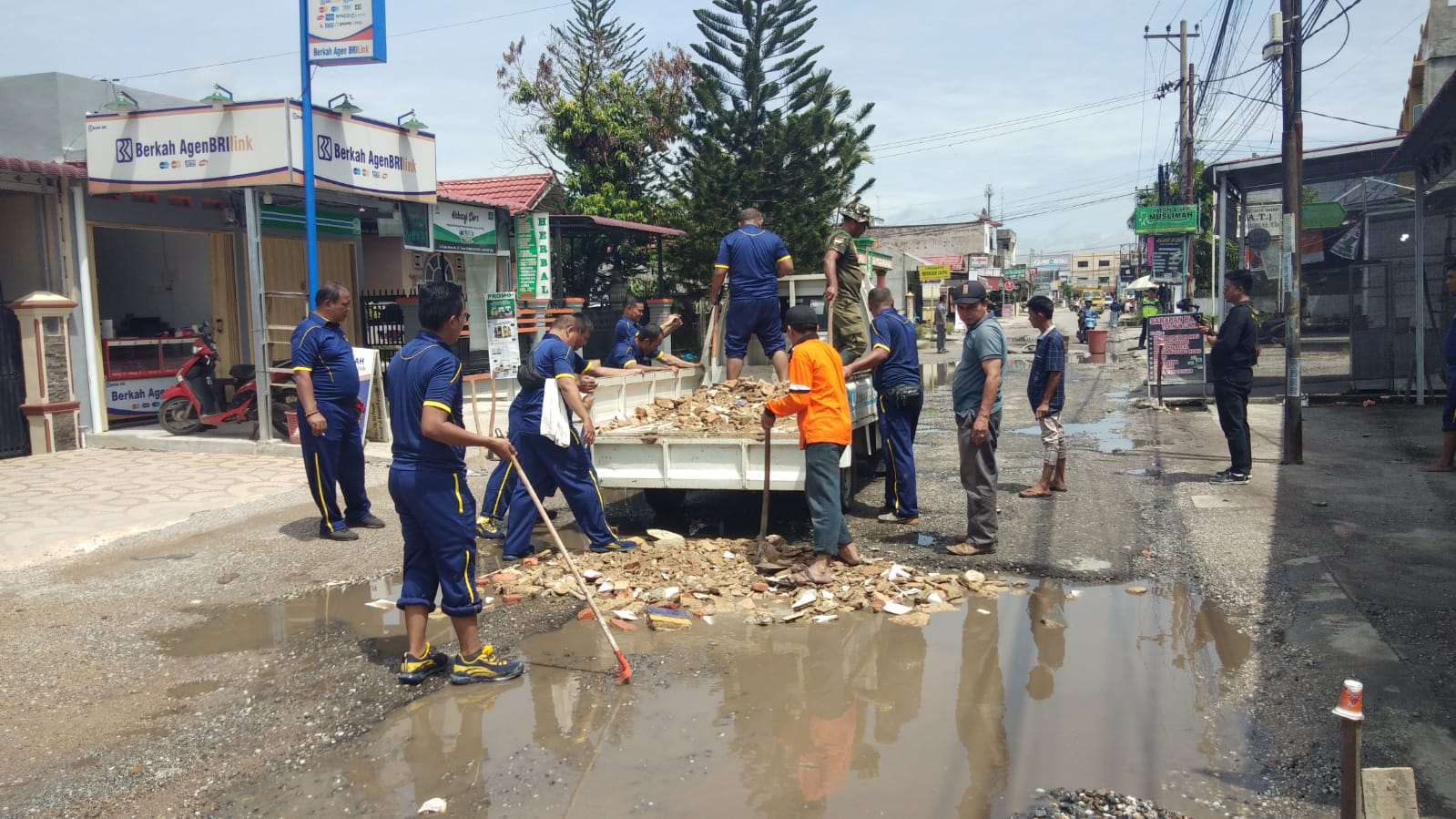 Kapolsek juga menjelaskan dalam rangka semenisasi ini di jalan Suka Karya (Kualu) dan seluruh Personil dilengkapi serta membawa cangkung, ember, sapu lidi dan sendok semen serta alat gotong royong lainya guna terlaksana pengerjaan dengan lancar.