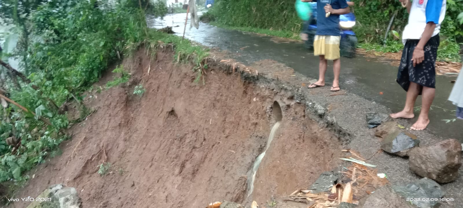 Akibat Derasnya Guyuran Hujan, Pondasi Talud Jalan Desa Lumeneng Paninggaran Longsor