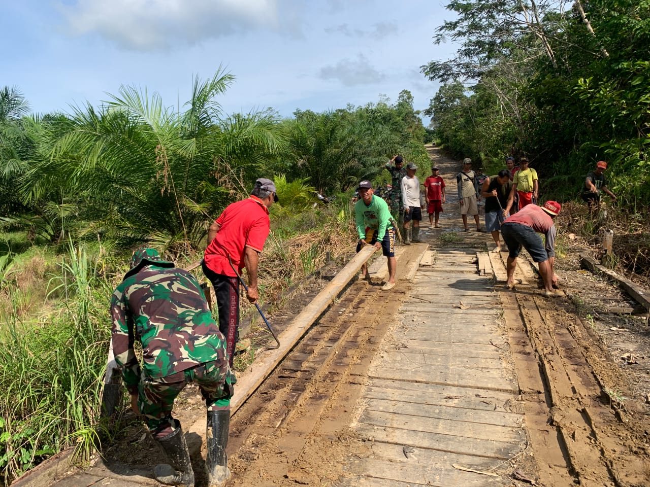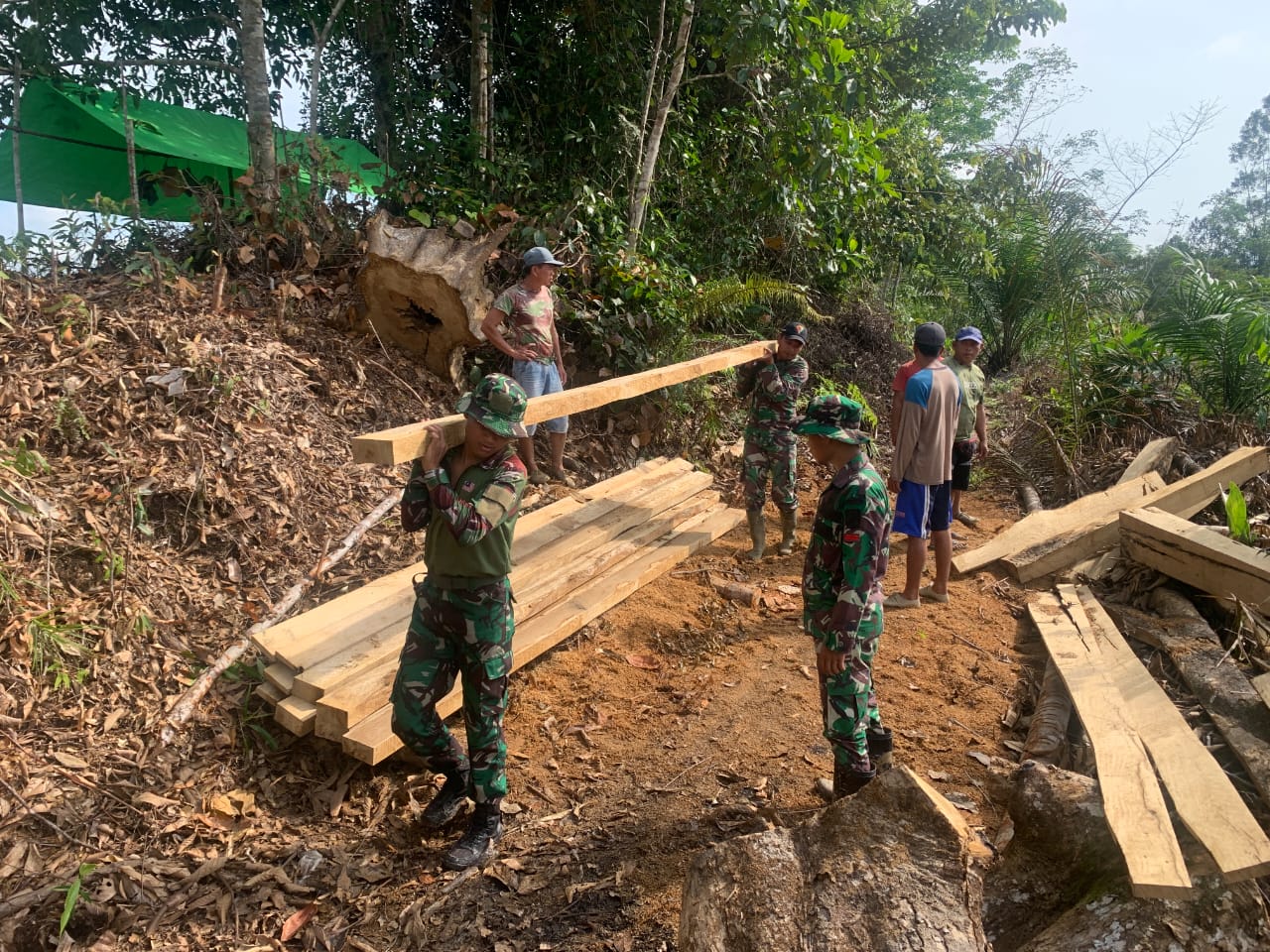 “Sebagai wujud kepedulian Satgas Pamtas Yonarmed 19/105 Trk Bogani kepada warga di desa binaan, personel Pos Koki Nanga Bayan SSK III yang dipimpin langsung oleh Danki Lettu Arm I Gede Bagus Tomy beserta personel Pos membangun jembatan baru secara swadaya yang menghubungkan Dusun Lubuk Ara dengan Dusun Blubu di Desa Nangan Bayan, dalam kegiatan tersebut personel pos bersama dengan aparat desa dan masyarakat bergotongroyong dalam menyelesaikan jembatan tersebut.” Ujar Dansatgas.