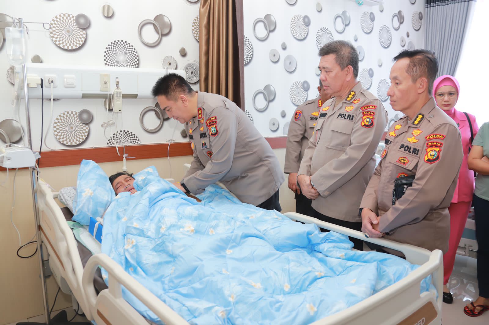 Tampak Irjen Iqbal menyambangi satu persatu, kamar demi kamar perawatan memberi support dan semangat.