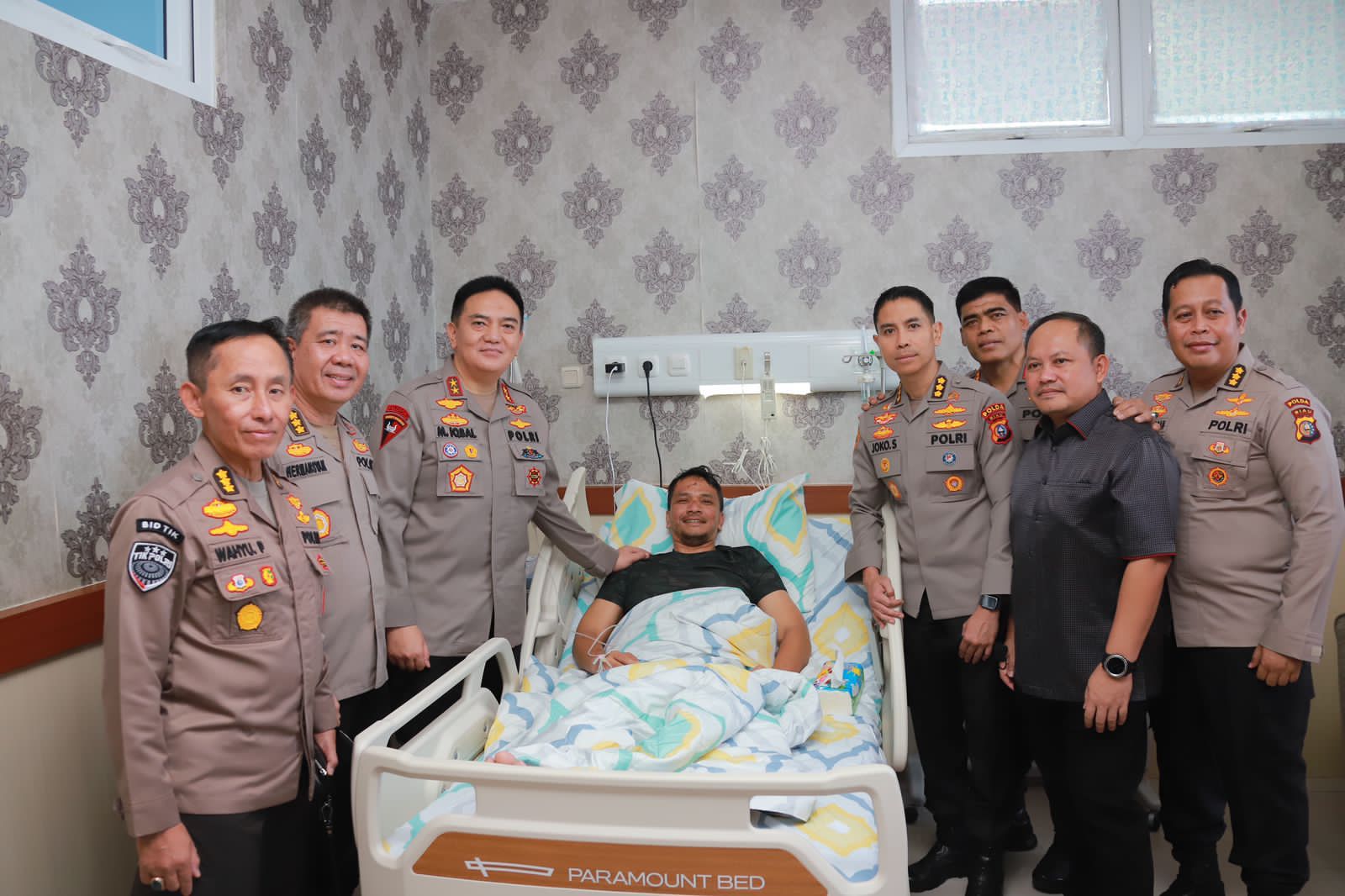 Rombongan Kapolda Riau berkesempatan menyambangi langsung sejumlah korban kecelakaan helikopter, Rabu (22/2/2023) di Rumah Sakit Bhayangkara Polda Jambi.
