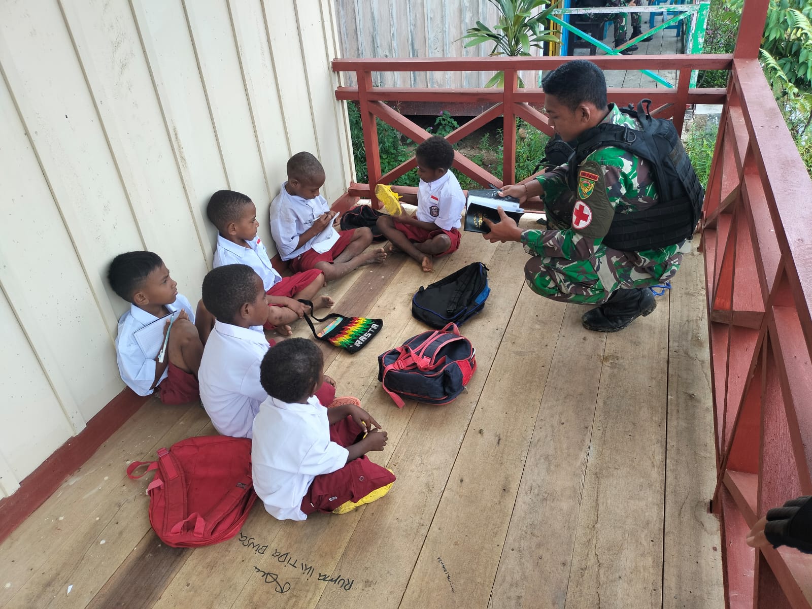 Kreasi Satgas Yonif Raider 142/KJ Komsos di SD YPK Lachairoi