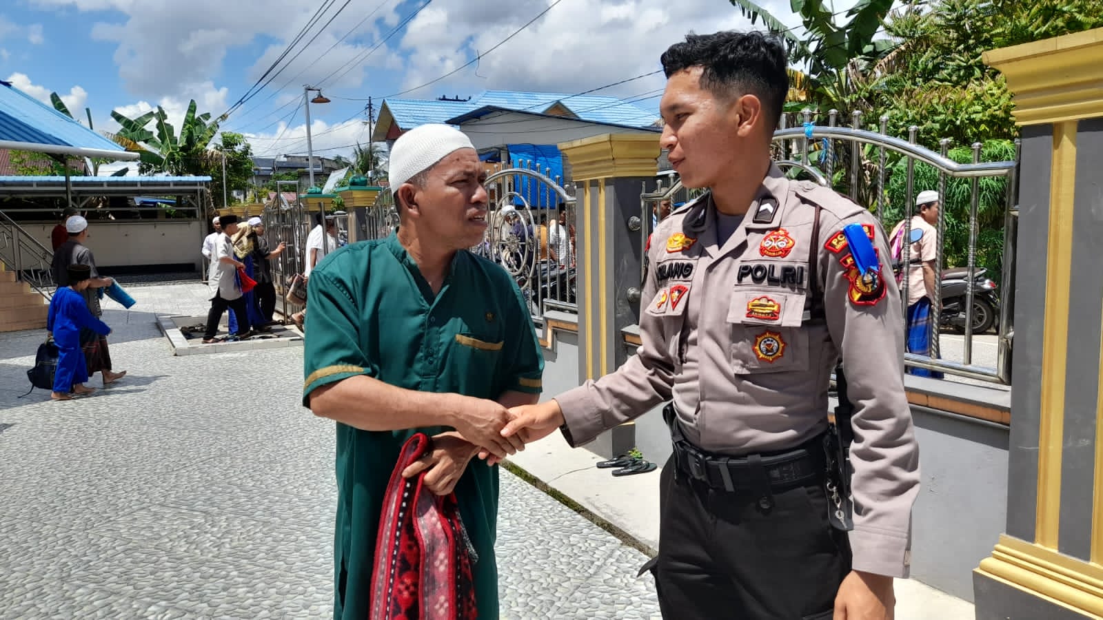 Personil Samapta Polres Inhil, Polda Riau kembali melaksanakan rutinitas agenda sholat Jum’at keliling di Mesjid Nurul Wathan Jalan Perintis Tembilahan, Jum’at (10/2/2023).