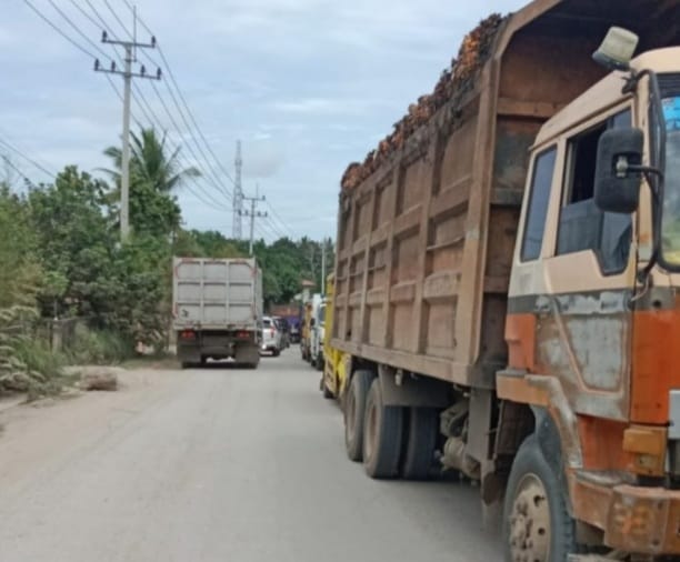Puluhan truk raksasa angkutan transportasi batubara Over Dimention/ Loading (Odol) dihadang ratusan warga Air Molek Pasir Penyu Inhu, sekira pukul 11.00, Minggu (12/2).