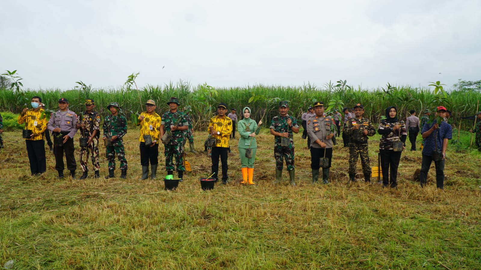 TNI dari Kodim 0710/Pekalongan bersama Forkompincam Wonopringgo, Ormas dan masyarakat setempat melakukan penghijauan di Desa Surobayan Kecamatan Wonopringgo Kabupaten Pekalongan, Provinsi Jawa Tengah, Selasa(28/2/23)