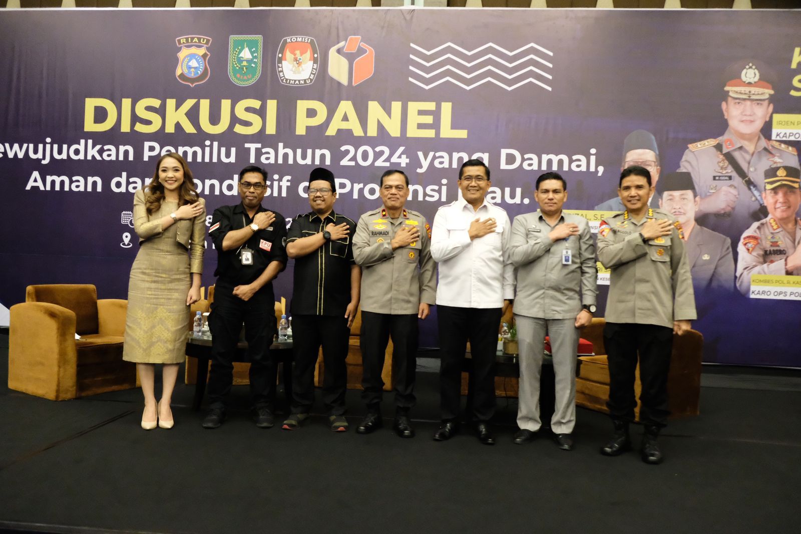 Pada Diskusi panel tersebut turut hadir anggota DPRI RI (Ketua DPW PPP Prov. Riau) Drs. H. Syamsurizal, S.E.,M.M, Ketua DPRD Provinsi Riau, Drs Yulisman S.Si, Kabinda Riau, Brigjen TNI. R. Wibisono Hendroyoso, M.M, Kepala Biro Pemerintahan dan Otonomi Daerah Prov. Riau, Firdaus S.E., M.M, Kasi Intel Korem 031 Wira Bima, Letkol Arh. Hadi Purwanto, S.H, Asintel Kajati Riau, Marcos M Simare mare,S.H.,M.Hum, Hakim Tinggi Riau, DR. H. Prayitno Hadi S.H., M.H, para kepala Daerah se Provinsi Riau, Ketua KPUD Prov. Riau, Sdr. Ilham Muhamad Yasir, SH.,LLM, Ketua Bawaslu Provinsi. Riau, Sdr. Alnofrizal, S.E.,M.Ikom, Kabag Kesbangpol Prov. Riau diwakili Hebdri Kesuma Atmaja, Ketua dan Wakil Ketua DPRD Kab/Kota se Provinsi Riau, Pengurus Partai Politik Provinsi Riau, Pengurus Partai Politik (Ketua, Sekretaris dan Bendahara) Kab/Kota se Provinsi Riau.