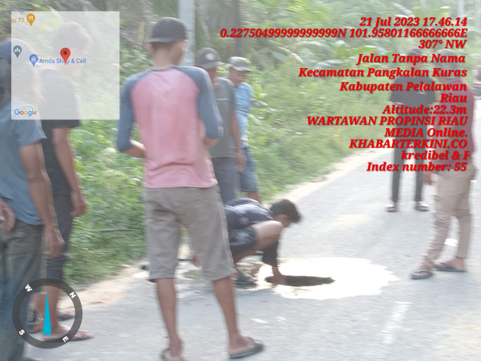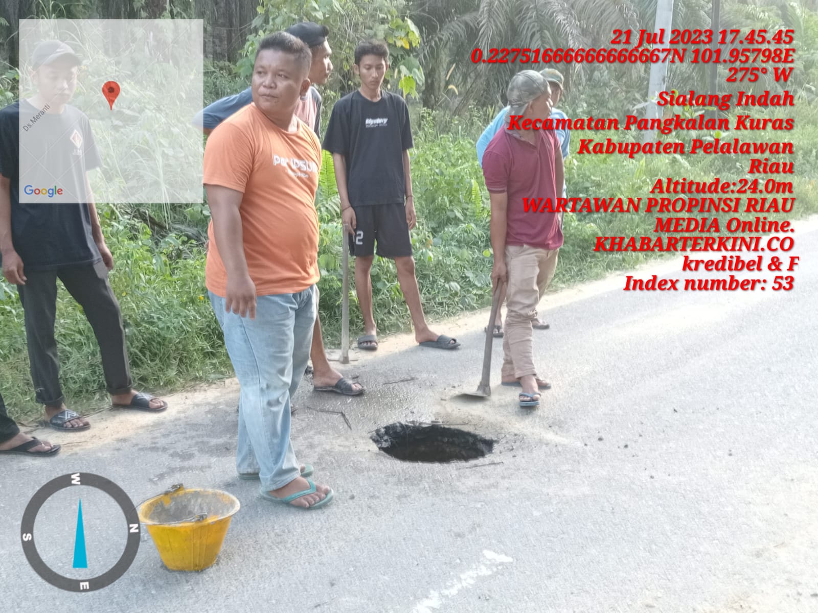 Dengan resahnya masyarakat Sialang Indah dan Masyarakat Beringin Indah keberadaan jalan yang berlobang. di Ujung Jalan Jalur Poros Sialang Indah, Kecamatan Pangkalan Kuras, Kabupaten Pelalawan Riau. 21/07/2023 pada jam : 17.45 wib.