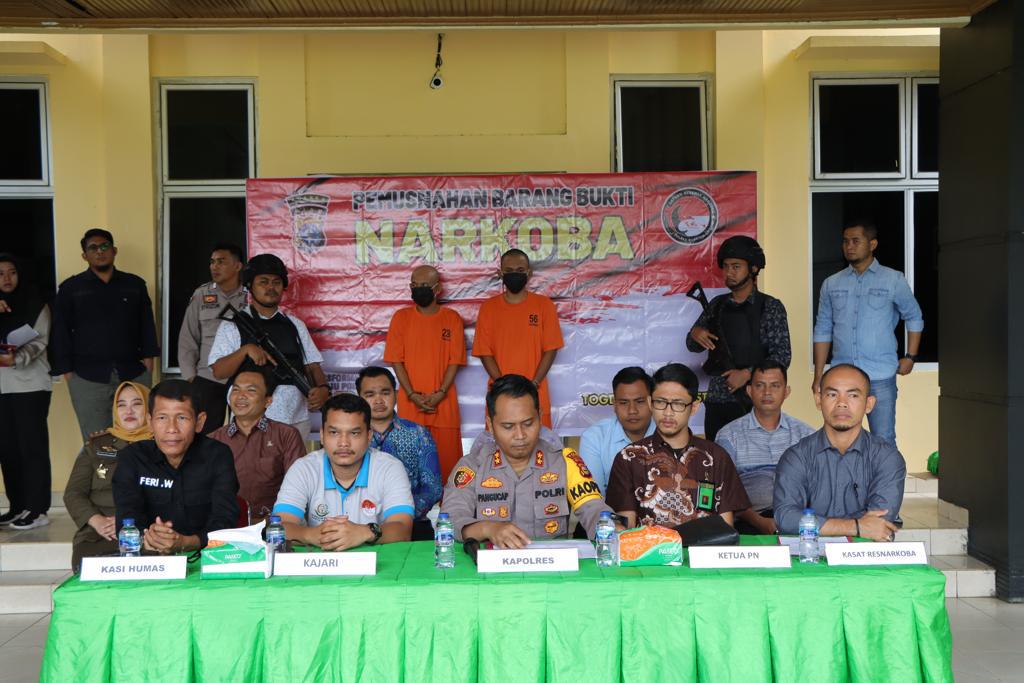 “Adapun pemusnahan barang bukti Narkotika jenis Sabu ini adalah hasil dari pengungkapan kasus 2 Pekan belakangan Ini dengan 2 Orang Tersangka berinisial ZA dan TZA dengan total barang bukti Narkotika Jenis Shabu yg dimusnahkan berat Bruto 179,19 gram,” ungkap Kapolres.