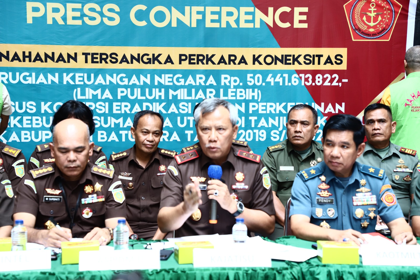 Hadir dalam Pers Konferensi itu, Ka Otmilti Laksma TNI E Masuppey, SH, MH, Kaotmil I Medan, Kolonel Laut (KH) Budi Winarno, SH, MH, Danpomdam I/BB, Kolonel Cpm Zulkarnain, SH, Kakumdam I/BB, Kolonel Chk M Irham Djannatung, SH, Aspidmil, Kolonel Chk Makmur Surbakti, SH, MH, Asintel Kejatisu, I Made Sudarmawan, SH, MH, Aspidsus Kejatisu, Anton Delianto, SH, MH dan Kasi Penkum Kejatisu, Yos A Tarigan, SH, MH.