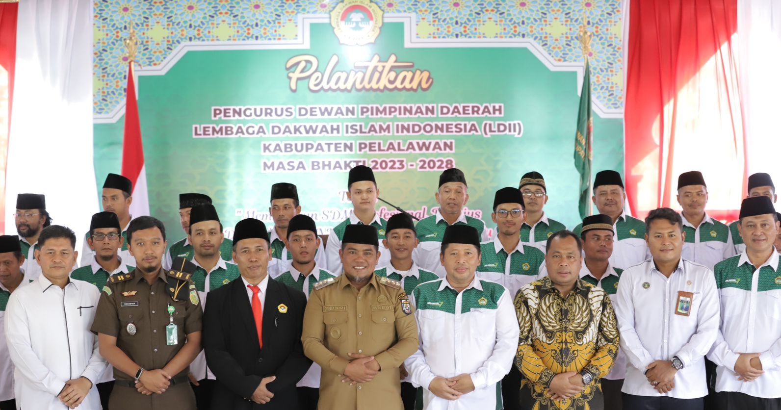 Bupati Pelalawan H. Zukri SE bersama Forum Komunikasi Pimpinan Daerah (FORKOPIMDA) menghadiri pelantikan Dewan Pimpinan Daerah (DPD) Lembaga Dakwah Islam Indonesia (LDII) Kabupaten Pelalawan untuk periode 2023-2028 pada Senin (20/11/2023) di Balai Seminai.