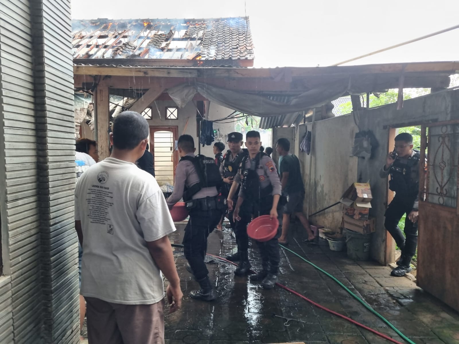 “Gerak cepat anggota Dalmas yang mengetahui adanya kebakaran ini segera membantu warga memadamkan api tersebut. Tampak juga anggota Sat Lantas yang tiba di lokasi melakukan pengaturan arus lalu lintas,” katanya.