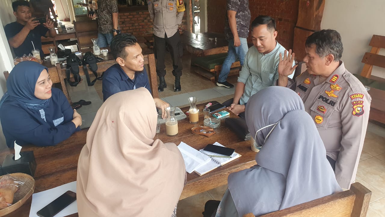 Kapolsek Siak AKP Asdisyah Mursyid SH turun langsung ke tempat tempat keramaian dalam giat cooling system dengan memberikan edukasi Pemilu Damai 2024 dan sekaligus memberikan pesan pesan Polri untuk selalu menjaga Kamtibmas kepada karyawan rs.mesra di cafe pohon kopi yg terletak disamping rs.mesra desa tanah merah, Kecamatan Siak Hulu, Kabupaten Kabupaten Kampar, sabtu (3/2/2024).