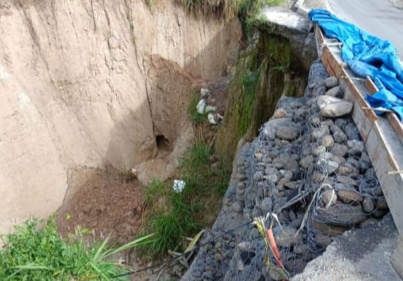 Menurut warga jalan tersebut sudah sering sekali longsor dan sekarang sudah sangat parah. Sekitar satu bulan yang lalu sudah ada tindakan fisik untuk penanganan longsor tersebut, yaitu pemasangan beronjong. Tapi menurut penilaian dari warga setempat terkesan pengerjaannya tidak maksimal.