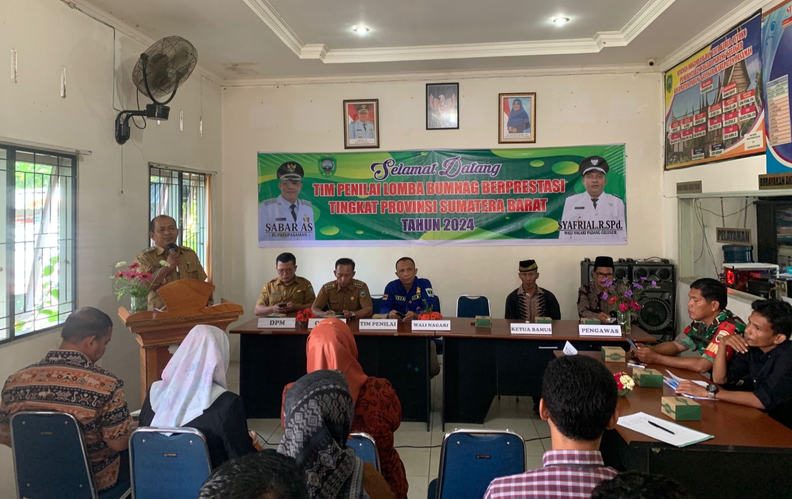 Kemudian Wali Nagari Padang Gelugur Syafrial R, S. Pd mengucapkan selamat datang kepada seluruh anggota tim penilai, karena menurutnya kedatangan tim penilai sangat dinantikan dan diharapkan dapat menjadikan motivasi bagi pemerintah dan masyarakat khususnya pengurus BUMNag Aur Tigo Pucuk dalam pengembangan BUMNag kedepannya.