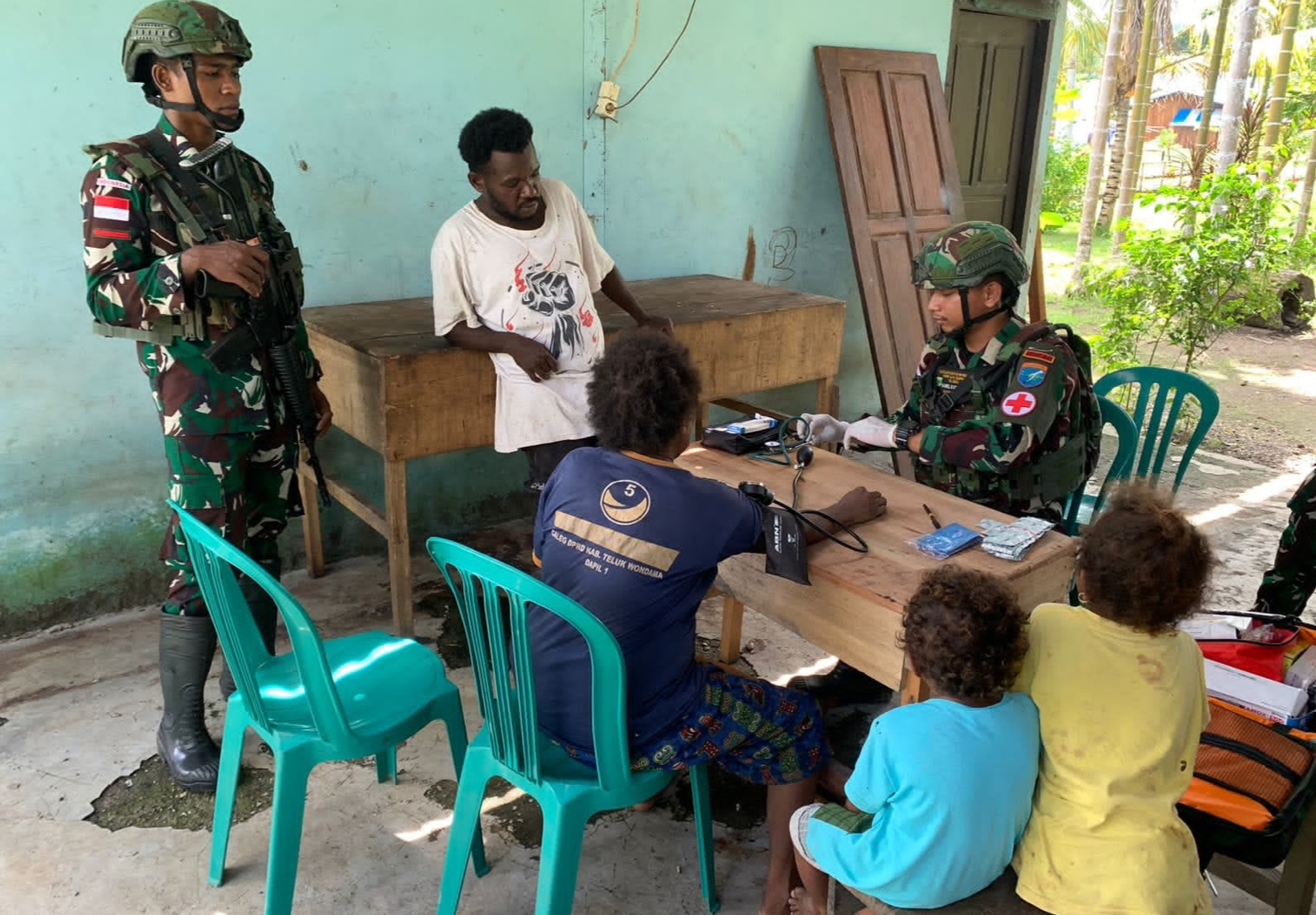 Anggota Pos Naikere Satgas Pamtas RI-PNG Yonif 642/Kps melaksanakan kegiatan pelayanan kesehatan di Kampung Naikere, Kabupaten Teluk Wondama, Provinsi Papua Barat pada tanggal 10 September 2024.