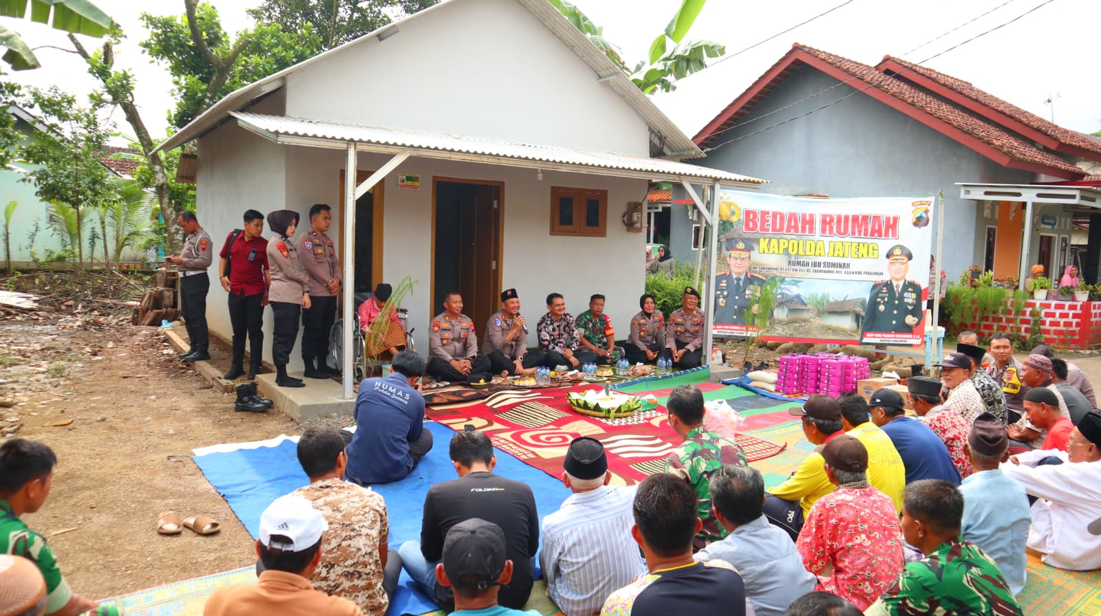 Kebahagiaan terpancar dari wajah Mbah Suminah, seorang lansia sebatang kara di Dukuh Sokowangi, Desa Sabarwangi, Kecamatan Kajen, Kabupaten Pekalongan. Rumahnya yang dulu nyaris roboh kini telah berdiri kokoh berkat program bedah rumah yang digagas Polda Jawa Tengah melalui Polres Pekalongan.
