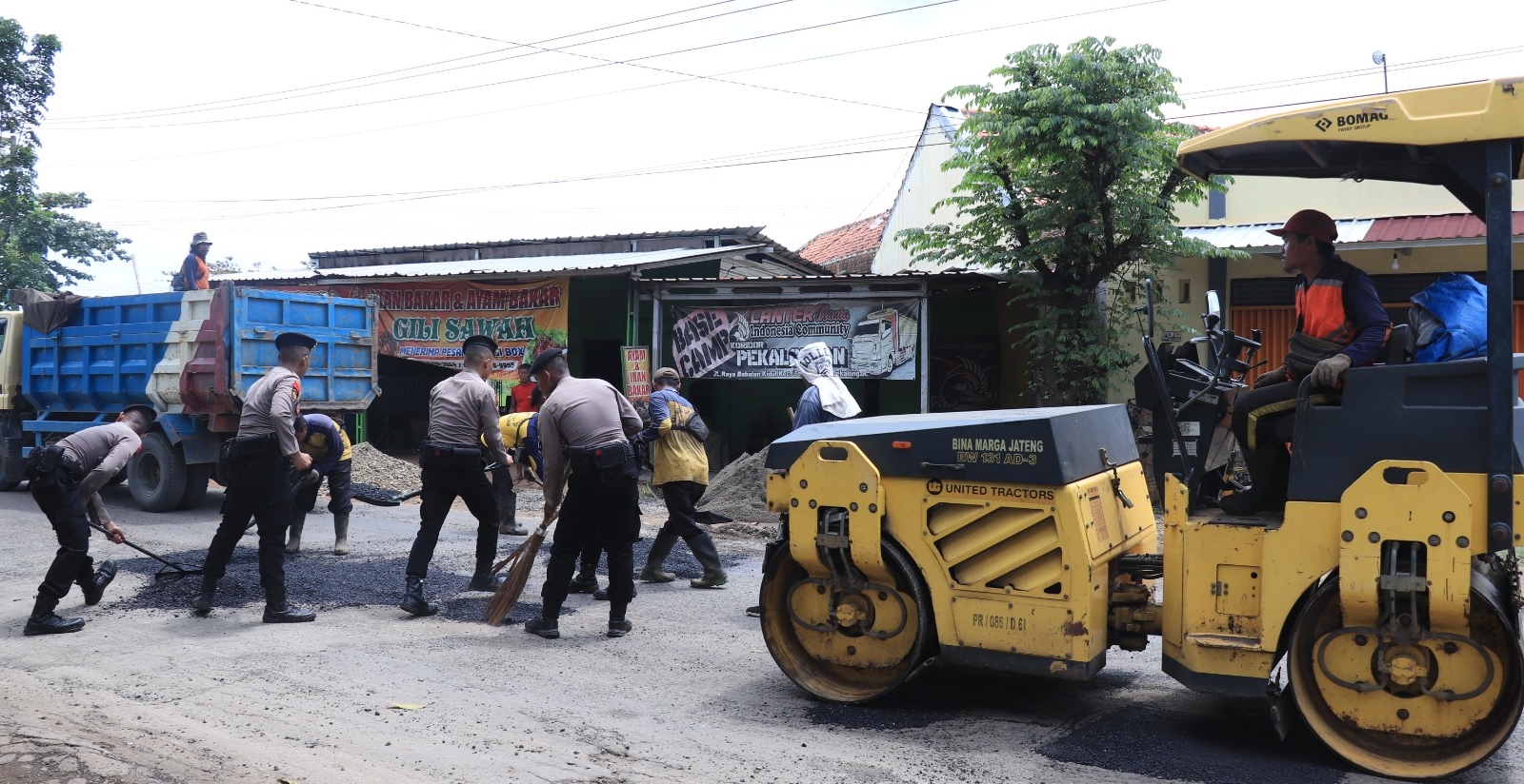 Penambalan dilaksanakan dilaksanakan Jl. Raya Bojong Desa Karangsari -Khabarterkini.co- Desa Bojong Minggir, Kecamatan Bojong, Kabupaten Pekalongan. Dalam kesempatan itu, Polres Pekalongan bersama dengan Bina Marga Provinsi Jawa Tengah melaksanakan penambalan dengan menggunakan material aspal.