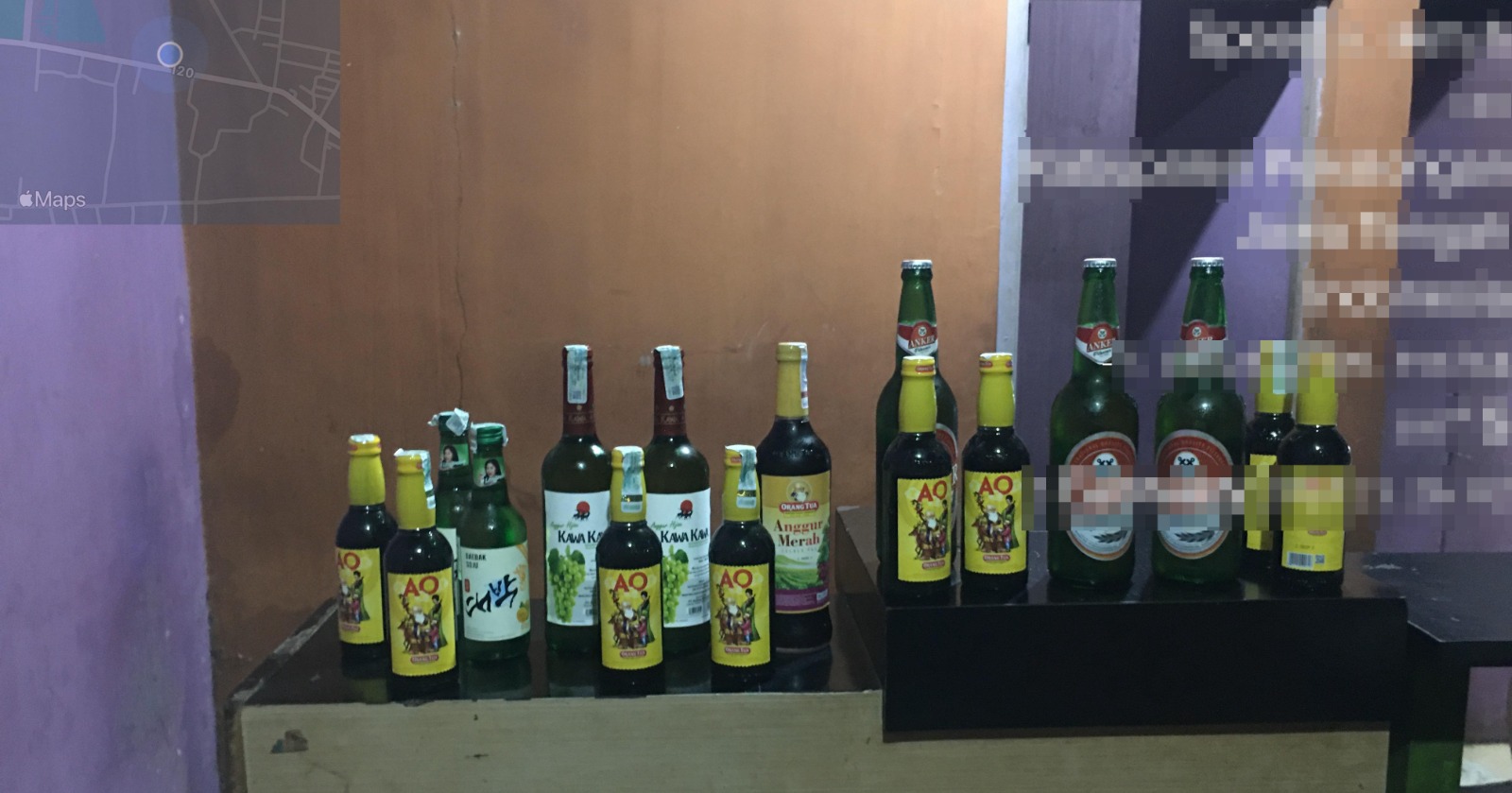 “Diantaranya 19 botol kecil AO, 7 botol besar ⁠Kawa Kawa, 2 botol Soju Daebak, 5 botol besar ⁠Beer Anker, 3 botol besar ⁠Anggur Merah, 2 botol kecil ⁠Anggur Merah, 4 botol kecil ⁠Anker Leci, 4 botol besar AO, dan 2 botol besar ⁠Beer Bintang,” ungkap AKP Suhadi.